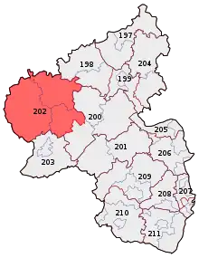 Bitburg is an electoral constituency (German: Wahlkreis) represented in the Bundestag. It elects one member via first-past-the-post voting. Under the current constituency numbering system, it is designated as constituency 202. It is located in northwestern Rhineland-Palatinate, comprising the Bitburg-Prüm district, Vulkaneifel district, and the northern part of the Bernkastel-Wittlich district.[1]