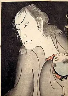 A common theme during this time in kabuki plays is the role of the "evil women" or "poisonous women", which is generally called an akuba. This role appears in this story as the wife Otowa.[3] This trope is defined by a character who is crass in behaviour, and has a tendency for vices like gambling, theft, and murder. It is made in contrast to that of the "dutiful wife" which is another reoccurring trope in kabuki.
