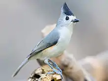The black-crested titmouse or Mexican titmouse (Baeolophus atricristatus), is a passerine bird in the tit family Paridae. Once considered a subspecies of the tufted titmouse (B. bicolor), it was recognized as a separate species[2] in 2002. It is native to southern Texas, Oklahoma, and east-central Mexico. Vagrants have been seen as far north and east as St. Louis, Missouri.