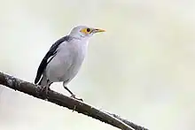 The black-winged myna[2] (Acridotheres melanopterus) is a species of starling in the family Sturnidae. The species is also known as the black-winged starling or the white-breasted starling. It is endemic to Indonesia. There are three recognised subspecies: the nominate race, which occurs across much of the island of Java; tricolor, which is restricted to south east Java; and tertius, which is found on Bali and possibly Lombok. The validity of the records on Lombok has been called into question, as there are only a few records and those may represent escapees from the caged-bird trade or natural vagrants. The species has often been assigned to the starling genus Sturnus, but is now placed in Acridotheres because it is behaviourally and vocally closer to the birds in that genus.[3]