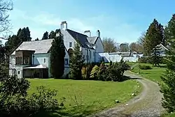It was originally built as a hunting lodge between 1898 and 1901 in the Arts and Crafts style for Robert David Jardine Mein-Austin (1864–1910) and his wife Flora. The house was designed by the Ayrshire-based architect James K. Hunter (1863–1929).[1] Some of its features include a wood-beamed glass house, a ballroom and a minstrels' gallery. Some of the house was taken down by owners Richard Akerman and Yvonne Hawker before 2003. Originally part of a 7,500-acre (30 km2) estate, it is now set in 14 acres (57,000 m2) of land.