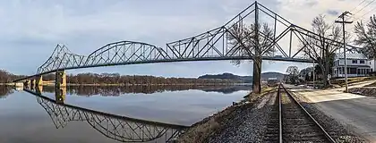 The Black Hawk Bridge spans the Mississippi River, joining the town of Lansing, in Allamakee County, Iowa, to rural Crawford County, Wisconsin. It is the northernmost Mississippi River bridge in Iowa.