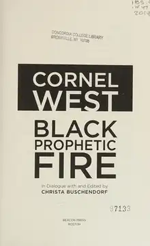 Black Prophetic Fire, published in 2014 by Beacon Press, is a book by Cornel West in dialogue with and edited by Christa Buschendorf, containing six conversations discussing the lives and legacies of figures in the Black prophetic tradition: Frederick Douglass, W. E. B. Du Bois, Martin Luther King Jr., Ella Baker, Malcolm X, and Ida B. Wells. The six conversations are preceded by an introduction titled "Why We Need to Talk About Black Prophetic Fire" and followed by a conclusion titled "Last Words on the Black Prophetic Tradition in the Age of Obama."