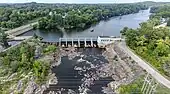 The city is located on the falls of the Black River at the northeast edge of the Driftless Area, where the river cuts through a region of granite.[9] The falls are covered by a hydroelectric dam, forming the 200-acre (0.81 km2) Black River Flowage.[10]