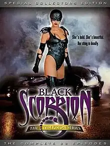 Black Scorpion is a superhero TV series that aired on the Sci-Fi Channel in 2001.[2] It aired in Canada on Space. The series is based on two Roger Corman Showtime TV-movies: Black Scorpion (1995) and its sequel Black Scorpion II: Aftershock (1997).[3][4] The show focuses on a female police officer, who by night takes to the streets and fights crime as the superhero the Black Scorpion.