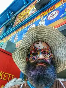 Black Scorpion (born August 26, 1979, Austin, Texas) is the pseudonym of Jason Black,[1] an American writer, director and performer known mostly for his contribution to the revival of modern freak show and sideshow arts. Known for his bizarre and surreal stage performances, multi-colored self-designed bandit mask and shoes, as well as his "trademark" claws, also called ectrodactyly[2] or "lobster claw syndrome". His feet are like his hands, three toes to a foot.
