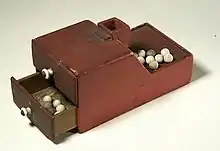 In some Masons' lodges, a black cube is used instead of a black ball so that a black ball can be differentiated from a dirty white ball, as the lighting in the meeting hall is very dim during voting.[4]