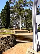 ![]() Memorial and flagpole aligned to setting sun on Anzac Day | |