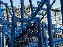 | A steel hypercoaster with its highest point being 235 feet (72 m) above sea level or 213 feet (65 m) above the ground. It reaches speeds of up to 74 mph (119 km/h).[25] It was the tallest and steepest roller coaster in the world in 1994–96. | |||||