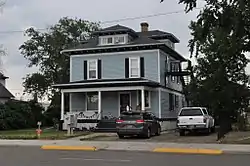 A review in 1987 asserted "It is an excellent example of a pattern book box style house with hip roof, hip roof dormers, clapboard siding with end boards, and architectural detail such as large extending eaves with raking cornice, decorative brackets under the eaves, wood shingle dormer siding. Only minor alterations, such as removal of porch roof railing detracts from integrity of structure."[2]