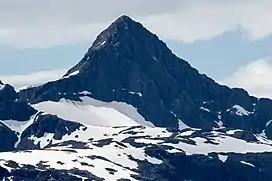Blackthorn Peak, also known as Black Thorn, is a 4,117 foot (1,255 meter) mountain summit located at the head of Glacier Bay's Geikie Inlet in Glacier Bay National Park and Preserve, in the Fairweather Range of the Saint Elias Mountains, in southeast Alaska.[1] The mountain is situated immediately east of Geikie Glacier, 80 mi (129 km) west-northwest of Juneau, and 2.5 mi (4 km) north of Threesome Mountain, which is the nearest higher peak. Although modest in elevation, relief is significant since the mountain rises up from tidewater in a little over two miles. The mountain was given its descriptive name in 1896 by Harry Fielding Reid, an American geophysicist who studied glaciology in Glacier Bay.[1] Weather permitting, Blackthorn Peak can be seen from Glacier Bay, which is a popular destination for cruise ships. The months May through June offer the most favorable weather for viewing or climbing the peak.