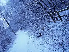 The Blackwater Valley Path follows the River Blackwater from its source in the Rowhill Nature Reserve in Aldershot to just beyond the point where it joins the River Whitewater near Swallowfield to become the Broadwater.[1] This long-distance route covers 23 miles (37 km) and closely follows the River Blackwater using public rights-of-way as well as permissive footpaths and is waymarked. It is looked after by the Blackwater Valley Countryside Partnership.[2]