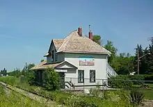 The historic CN train station that now houses the Blaine Lake Wapiti Library along with the local town history museum. The station was built in 1912 two years after the rail line between Prince Albert and North Battleford was constructed and served the community until 1973.[5] The Doukhobor Dugout House is a Provincial Heritage Property southeast of the town.