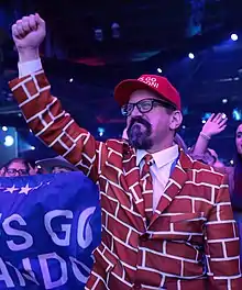 Blake Marnell, also known as "Brick Suit" or "Brick Man",[1] is an American political activist and media personality known for wearing a brick-patterned suit at Donald Trump rallies and other political events, a symbol of his support for Trump's border wall.