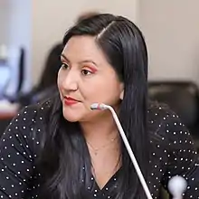 In March 2023 she failed to get a debate at the National Assembly regarding her proposal that the assembly's members should give 50% of their salaries to the victims of the recent earthquake.[4] In April she defended the position of the President who was being accused of corruption. She said that the President Lasso's enemies were having to count votes and evidence as they did not have enough to vote down the President.[5]