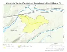 Watershed and Course of Blanchard Run (Anderson Creek tributary) in Clearfield County, Pennsylvania, USA