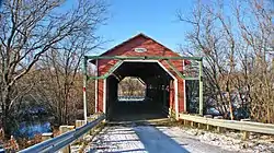 • 200 metres (660 ft) eastward, to the Étienne-Poirier covered bridge, that is, rang Pellerin road.[1]