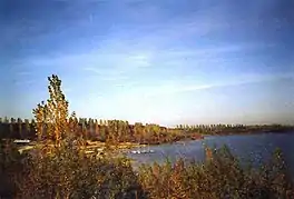 The Blausteinsee Leisure and Recreation Area is an artificial lake north of the Eschweiler municipality in the Aachen district of North Rhine-Westphalia, Germany.[1] Its area is around 100 hectares and depth is 46m. It was created during the regeneration of the Zukunft opencast coal mine in the Rhineland coalfield, made by flooding the pit left by the mine with water. Today, the lake is a holiday area for the surrounding towns. The surface of the lake is 129 metres above sea level and its volume is around 25 million cubic metres. The filling of the lake began in 1994.