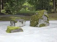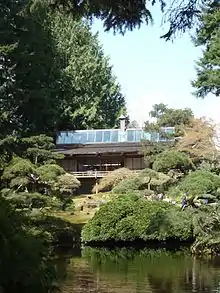 The Bloedel Reserve is a 150-acre (0.6 km2) forest garden on Bainbridge Island, Washington, United States. It was created by Virginia and Prentice Bloedel, the vice-chairman of the lumber company MacMillan Bloedel Limited, under the influence of the conservation movement and Asian philosophy. The couple wished to capture the essence of the Japanese garden—the qualities of naturalness, subtlety, reverence, tranquility—and construct a Western expression of it. Although the Reserve includes a traditional Japanese garden, the Bloedels' approach for the rest of the property stands in contrast to that of 'Japanese gardens' which achieve their effects through the use of ornament. The Bloedel Reserve has both natural and highly landscaped lakes, immaculate lawns, woods, a stone garden[1] (formerly the swimming pool where poet Theodore Roethke drowned in 1963), a moss garden, a rhododendron glen, and a reflection garden designed with the assistance of landscape architects Richard Haag, Thomas Church, Kazimir Wall, and Danielle Stern. The Bloedels' French Chateau-style home, including many original furnishings, is preserved as a visitor center.[2]