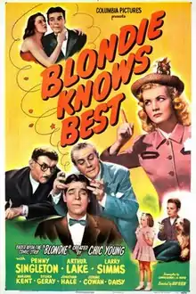 Blondie Knows Best is a 1946 American comedy film directed by Abby Berlin and starring Penny Singleton, Arthur Lake, Larry Simms, and Marjorie Ann Mutchie. It is the eighteenth of the 28 Blondie films.