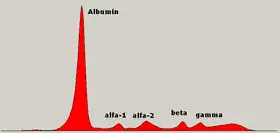- ↑ Tuazon, Sherilyn Alvaran; Scarpaci, Anthony P (May 11, 2012). Staros, Eric B (ed.). "Serum protein electrophoresis". Medscape. Retrieved 2 October 2013.