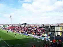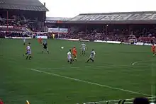 The last of these was the club's shirt sponsors between 1997 and 2001 – Telewest.[80] Not long before this, however, the television-camera gantry, which was originally erected on the West Stand,[81] was moved to the East Stand,[82] somewhat negating the effectiveness of Telewest's advert.