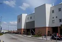 Also in 1906, a 2,000-capacity stand was constructed on the north side of the ground. This new stand was named the Motor Stand and made Bloomfield Road one of the few grounds in England to have stands on all four sides of the ground. Partly erected, it was opened for the first time on 10 November for the visit of West Bromwich Albion.[5] The club organist a whist drive at the Conservative Club to help defray the expense. The stand was borrowed from the Blackpool Corporation and practically filled the north side of the ground. It was purchased from the council in June 1908 at a cost of £100.[5]