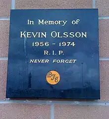 On 24 August 1974, 17-year-old Blackpool fan Kevin Olsson was fatally stabbed at the rear of the Spion Kop during a game against Bolton Wanderers.[16]