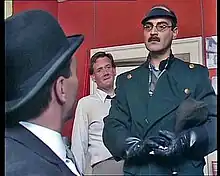 Blott (David Suchet) in Hoskins' office, with Hoskins (Paul Brooke) and Dundridge (Simon Cadell).