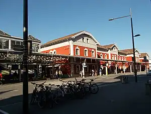 The station building is on the northeastern side of the lines, facing the inner city. On the other, southwestern, side of the lines is the goods yard.