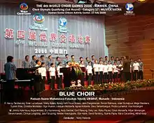 | 2006 | 4th World Choir Games[2] | Gospel & Spiritual | Silver Diploma (1st Round)[2] | Xiamen, People's Republic of China |