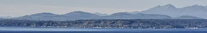 For a more complete list of hills see List of mountains and hills of Kitsap County, Washington. The name "Blue Hills" is said to come from the green trees appearing blue at a distance due to atmospheric optics.[9]