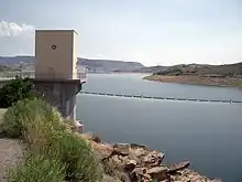 Blue Mesa Dam is a 390-foot-tall (120 m) zoned earthfill dam on the Gunnison River in Colorado. It creates Blue Mesa Reservoir, and is within Curecanti National Recreation Area just before the river enters the Black Canyon of the Gunnison. The dam is upstream of the Morrow Point Dam. Blue Mesa Dam and reservoir are part of the Bureau of Reclamation's Wayne N. Aspinall Unit of the Colorado River Storage Project, which retains the waters of the Colorado River and its tributaries for agricultural and municipal use in the American Southwest.[1][2] Although the dam does produce hydroelectric power, its primary purpose is water storage.[3] State Highway 92 passes over the top of the dam. Blue Mesa Dam houses two turbine generators and produces an average of 264,329,000 kilowatt-hours each year.[4]