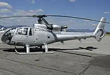 To film Blue Thunder, the producers employed two examples of the French-made Aérospatiale SA-341G Gazelle light utility helicopter, serial numbers 1066 and 1075, both built in 1973. After the film and TV series was made, both helicopters were sold to Michael E. Grube, an aviation salvage collector in Clovis, New Mexico. Sometime after, around 1985, one of the helicopters had a small role in the pilot episode of MacGyver, which featured the helicopter in a different paint job, the microphones were removed, the video surveillance package removed leaving empty mounting pylons in place, and the number on the side being changed from "02" to "51".[1]