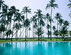 The hotel is situated in Wadduwa, a small coastal town located (27 km (17 mi) south of Colombo. The site originally was a coconut plantation, situated between the beach and the coastal railway line.[2]