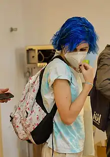 Beginning in the 2010s, and into the early 2020s, blue hair (and less commonly purple hair) has become associated with feminism, socialism, and the LGBTQ community, especially the young Generation Z and Millennial members of those socio-political movements.[11][12] In response, supporters of conservatism in the United States and the Republican Party have started to use blue hair as a sign of an individual holding liberal philosophy. First coined by users of 4chan, itself often associated with the alt-right, conservatives in the US began using "blue-haired liberals" as a taunt towards those who have "blue hair and pronouns".[13][14][15]