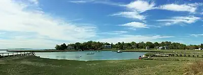 ![]() The mouth of the Bluefish River (left) seen from the shore of Duxbury Bay | |