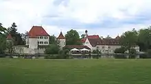 Near the castle, a memorial by the sculper Hubertus von Pilgrim was set up to remember the thousands of victims of the death march that the prisoners of the Dachau concentration camp were forced to go on. This memorial is one of 22 identical sculptures erected along the routes of the death marches.[1]