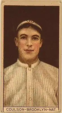 Robert Jackson Coulson (June 17, 1887 – September 11, 1953) is a former Major League Baseball and Federal League outfielder. He played ball in four seasons, which spanned 7 years. In the Majors, he played for the Cincinnati Reds and Brooklyn Superbas. In his one season in the Federal League, 1914, he played for the Pittsburgh Rebels. Coulson threw and batted right-handed, weighed 175 pounds, and was 5 ft 10 in (1.78 m) tall. He also attended Penn State University.