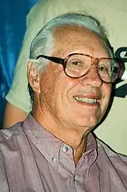 The Indians played against the New York Giants in the 1954 World Series, getting swept in four games. Unlike the 1948 Series, Feller did not make an appearance. Indians manager Al López said of not starting Feller, "I know Feller wanted to start one of the games in the 1954 World Series (when the Indians were swept by the New York Giants), though we never really talked about it ... If we had won the first or second game in New York, I was going to start Feller in Cleveland in the fourth game. But when we didn't (win either game in New York), why in the hell was I going to pitch Feller? He was the fifth starter on the club at that time, and wasn't the Feller he'd been (earlier in his career)."[58] In 1955, Feller spent part of the season as a starter, then was moved to the bullpen later in the season. He went 4–4 in 25 appearances.[10] During the off-season, he became chairman of the Ohio March of Dimes and served as player representative for the American League. He worked with National League representative Robin Roberts throughout the off-season, discussing the possibility of player arbitration and pensions with baseball owners; he then became president of the Major League Baseball Players' Association.[2]: 244