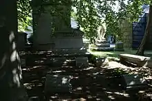 The shady burial site of the Marshall family in Salem Fields Cemetery