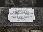 - ↑ ""BOBBY" LEACH DEAD". New Zealand Herald. April 29, 1926. Retrieved October 23, 2020.