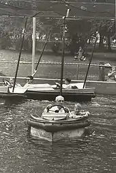 Boblo's Scootaboats, which were very similar to well known Bumper Cars, were a popular ride. The cars operated by drawing power from an overhead electric grid unlike the Bumper Boats in use today. Beginning in 1952, Joe Short, a man of diminutive physical stature, was employed as 'Captain Boblo', and traveled on the boats entertaining passengers of all ages. He wore a variety of colorful clothing, including a large hat with 'Captain Bob Lo' on the peak, and was typically equipped with binoculars for navigation purposes. He previously worked for Ringling Brothers Circus and captivated children with adventurous tales and knock-knock jokes until his retirement in 1974, at the age of 90. After the boats docked at night back in Detroit, Mr. Short continued entertaining at the local bars and taverns he frequented.[33]