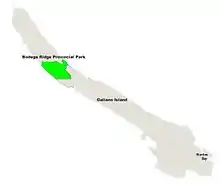 Bodega Ridge Provincial Park is a provincial park in British Columbia, Canada. It is on Galiano Island, which lies between Vancouver and Vancouver Island, and comprises 233 hectares (580 acres). The park's high cliffs are home to bald eagles, peregrine falcons, and turkey vultures.