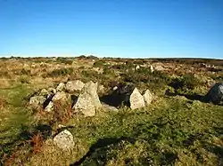 Bodrifty is the modern name of an Iron Age village, now in ruins, in Cornwall, England, United Kingdom. It is 700 yards west of Mulfra Hill in Penwith District, 3 miles northwest of Penzance and 1.5 miles southwest of Porthmeor, on the high ground of the watershed between the Atlantic and the English Channel.[1] Today the settlement is barely more than a farm within the boundary of the village of New Mill, just north of Boskednan.