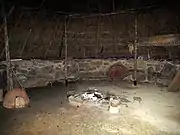The site is archaeologically significant in part because of the wide range of pottery shards discovered there.[6] It was excavated extensively in the early 1950s and most of the finds are in the Royal Cornwall Museum, Truro.[1][7] An analysis of the styles of pottery suggests that Bodrifty was inhabited from the fifth century BC to the first or second century AD.[8] The settlement consisted of eight structures surrounded by a stone wall enclosing about three acres. The structures themselves had internal diameters of between three and eight metres.[9] It is possible that the name means "the house by the summer shed" in Cornish.[10]