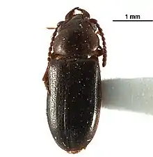 Boganiidae is a family of beetles, in the superfamily Cucujoidea. Members of the family are found in southern Africa, Australia and New Caledonia. Adults and larvae are pollenivorous, feeding on the pollen of cycads and flowering plants of the families Myrtaceae, Meliaceae, Cunoniaceae and Elaeocarpaceae.[1] Metacucujus and Paracucujus act as pollinators for cycads Encephalartos and Macrozamia respectively. This association with cycads goes back to at least the Mid-Cretaceous, with an extinct form being found with preserved cycad pollen in 99 million year old Burmese amber.[2]