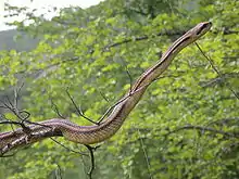 Big Bogdo Mountain is the only habitat in Russia of the squeaky gecko Alsophylax pipiens.[1] The other reptiles include the spotted toadhead agama, the steppe-runner and the lizard Eremias velox, as well as various snakes, including the black whipsnake and the four-lined snake.[6]