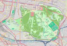 The Bois de Vincennes has a total area of 995 hectares[2] (2,459 acres), making it slightly larger than the Bois de Boulogne, (846 hectares / 2,091 acres), the other great Parisian landscape park located at the western side of the city.[3] It occupies ten percent of the total area of Paris, and is almost as large as the first six arrondissements in the center of the city combined. The Bois de Vincennes is about three times larger than Central Park in New York City (341 hectares / 843 acres), and is slightly larger than Richmond Park in London (955 hectares / 2,360 acres); but is smaller than Griffith Park in Los Angeles (1,170 hectares / 2891 acres). Only about half of the Bois de Vincennes is covered with trees.