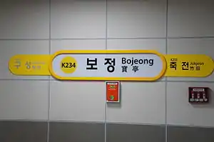 1. "보정역" [Bojeong Station]. terms.naver.com (in Korean). Retrieved 2019-05-31.